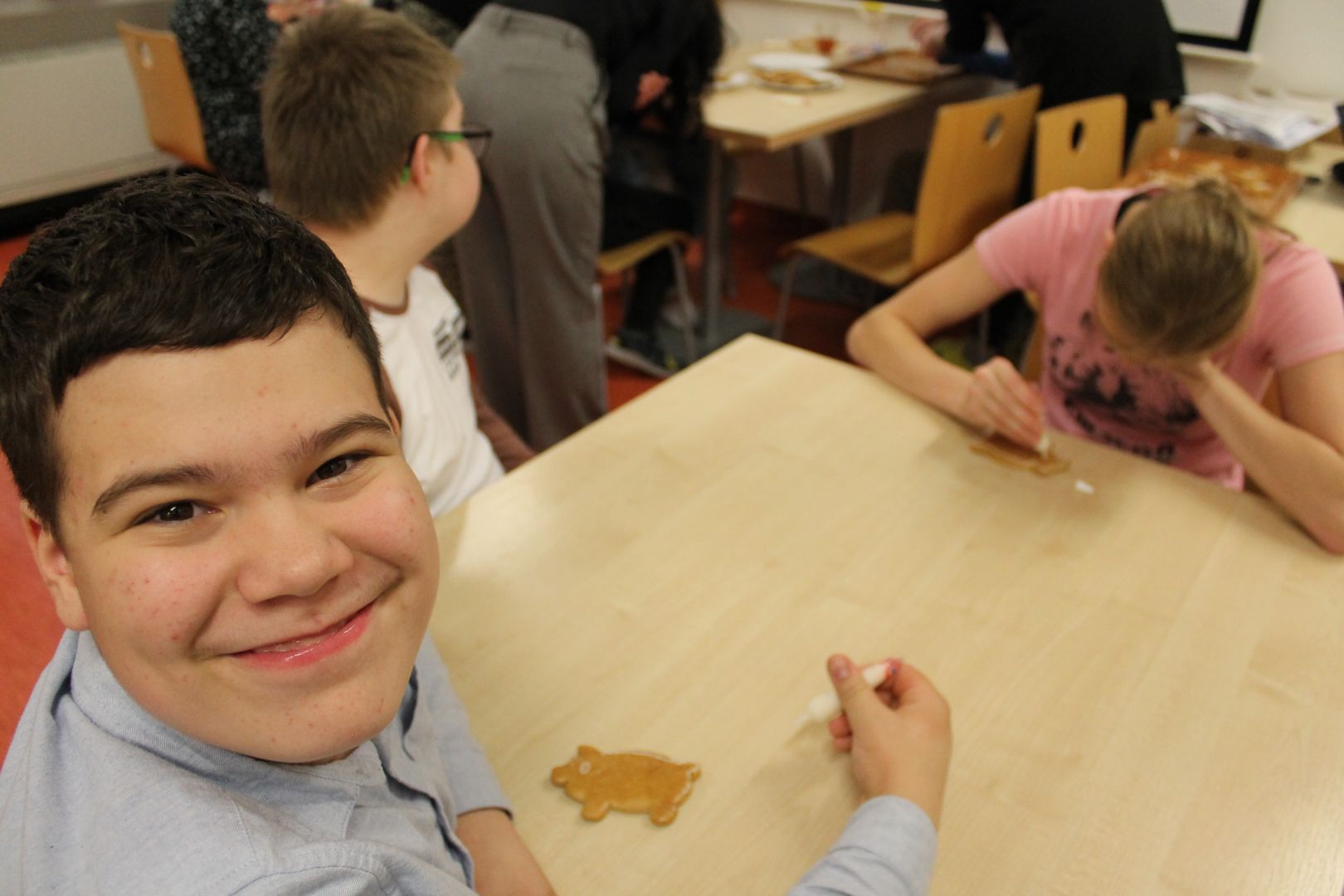 V naší škole jsme si užili příjemné předvánoční odpoledne se společným zdobením perníčků, kterého se zúčastnili i rodiče dětí z internátu. Kromě tvoření jsme si vyzkoušeli také dva tradiční vánoční zvyky – krájení jablíčka pro štěstí a pouštění lodiček z ořechových skořápek. Celou akci doplnila voňavá ochutnávka cukroví, která navodila krásnou sváteční atmosféru.