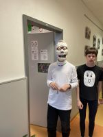 Dnes jsme si užili ve škole super halloweenské dopoledne. Žáci všech tříd dostali speciální dopis, ve kterém byly popsány všechny strašidelné úkoly, které měli splnit. Museli zdolat v tělocvičně pavučinu, nevzbudit přitom pavouka. Nakrmit hladovou čarodějnici míčky na chodbě, uhádnout symboly Halloweenu, složit rozbitého kostlivce. Ovšem největší atrakcí bylo poznávání strašidelných zvuků a focení ve foto koutku. Někteří žáci si nechali namalovat na obličej netopýra, pavouka nebo dýni. Po splnění všech úkolů se všichni sešli a zatančili si na halloweenské diskotéce.