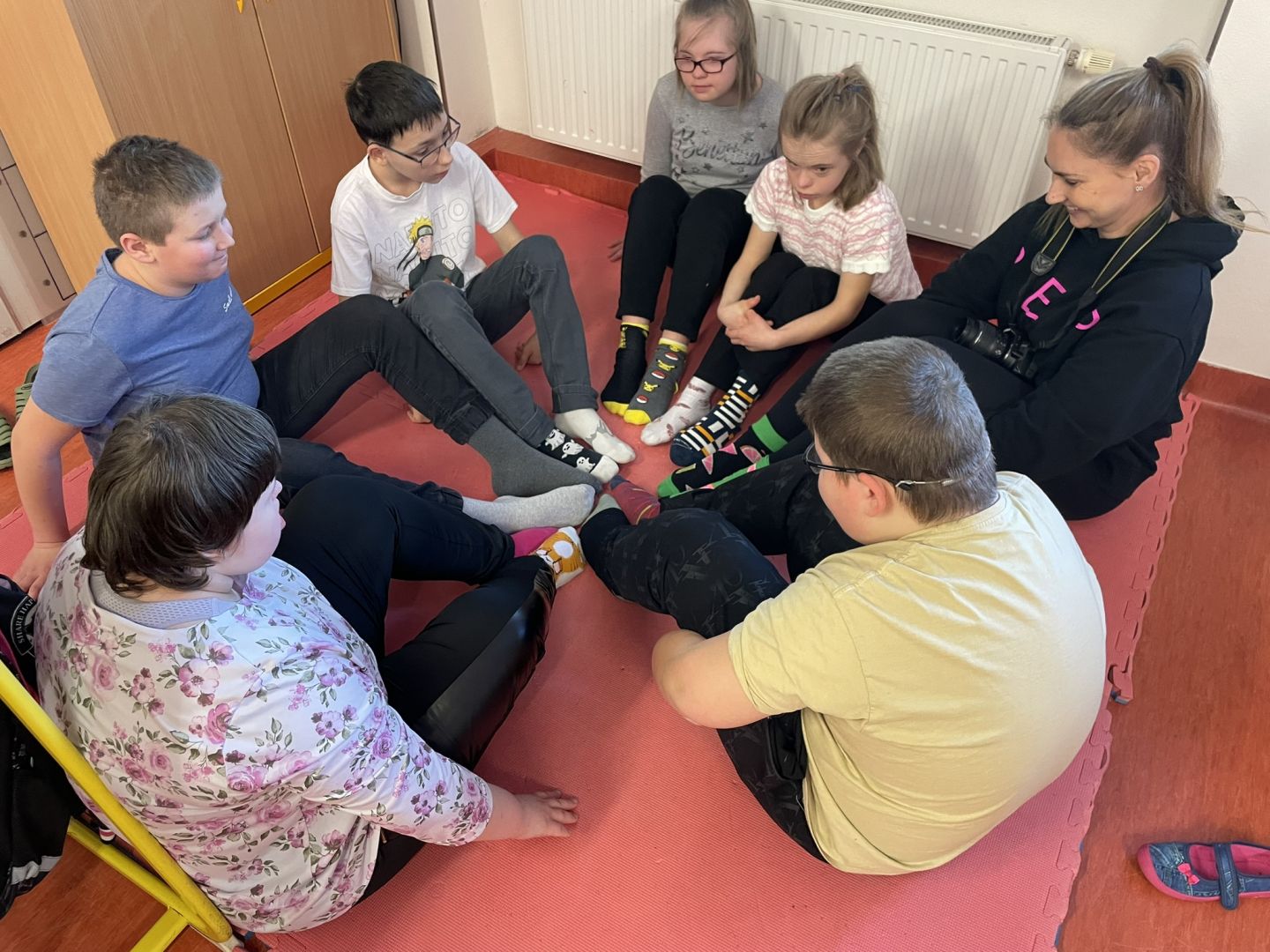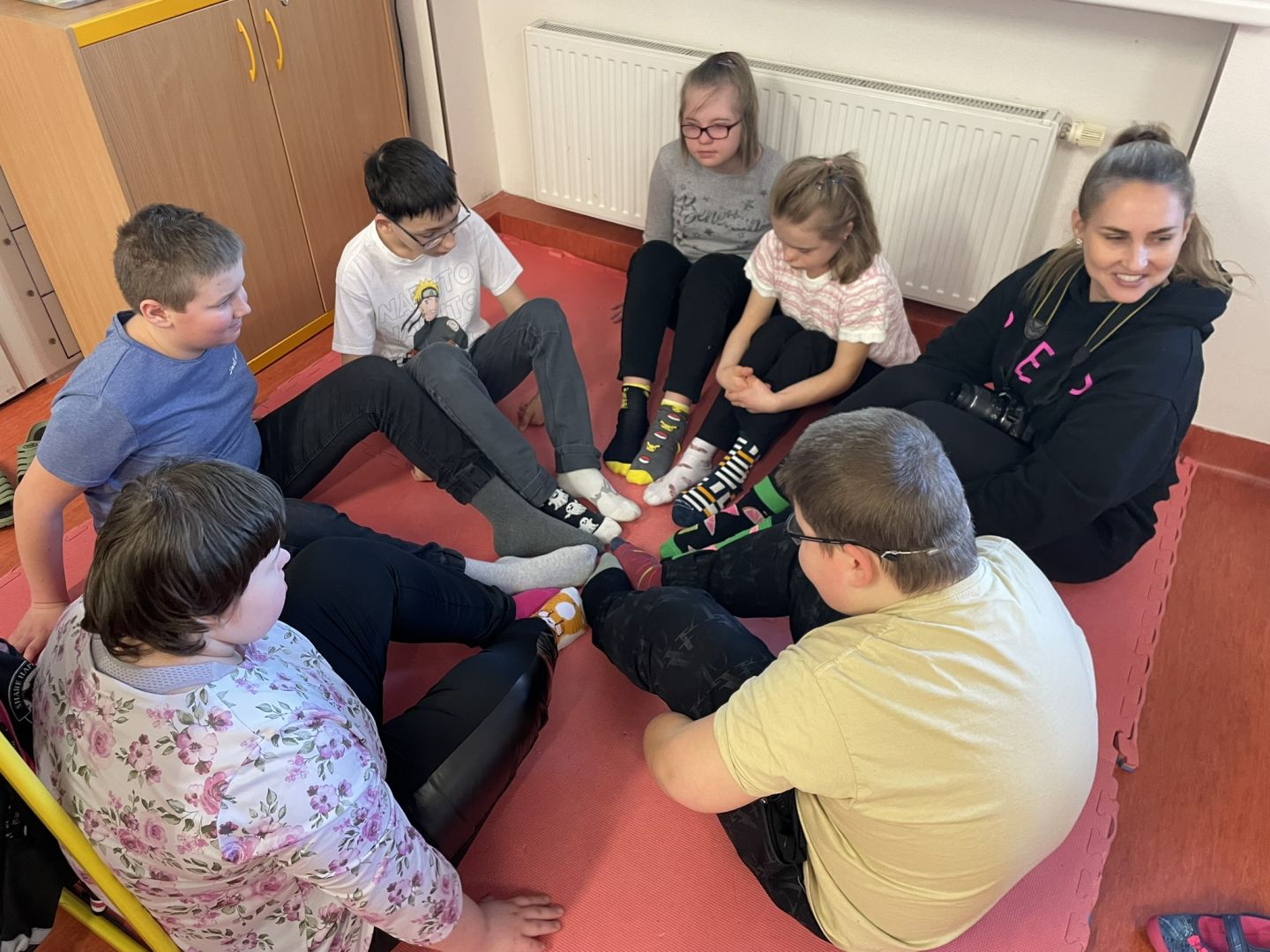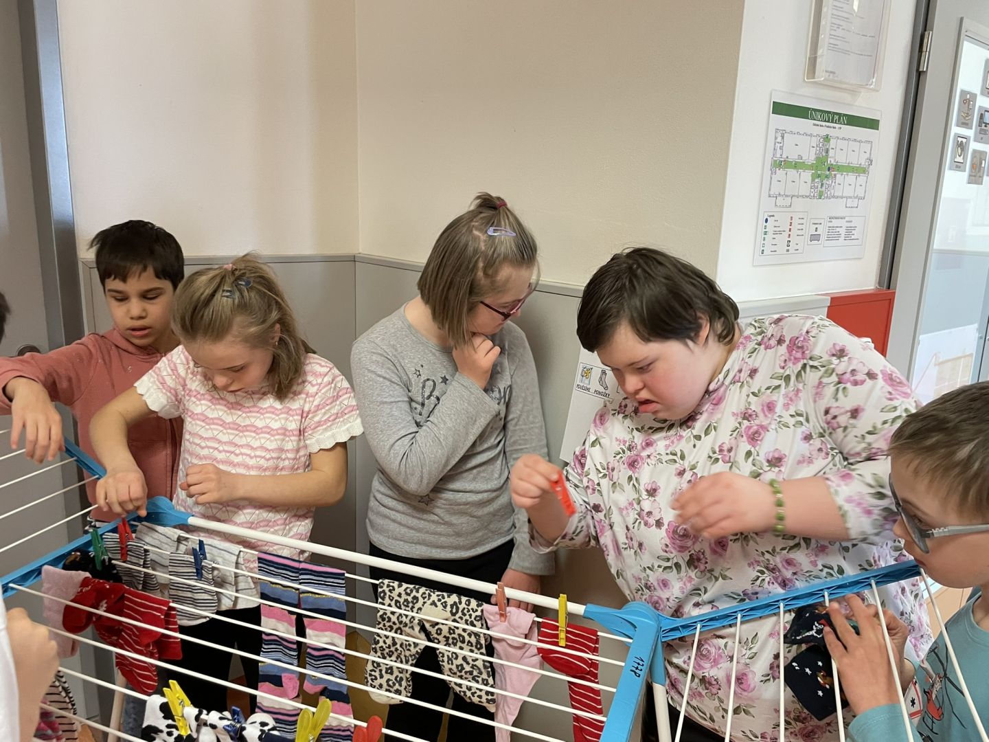 Zítřejší jarní den nesouvisí jen s příchodem teplejšího počasí a probouzející se přírodou. 21. března se zároveň slaví Světový den Downova syndromu. Datum 21. 3. symbolizuje podstatu postižení – ztrojení 21. chromozomu. Jedním z hlavních symbolů tohoto dne jsou barevné nesourodé ponožky. Když se dvě ponožky dají patami k sobě, připomínají chromozom X, a právě proto se staly výrazem podpory a solidarity s lidmi s Downovým syndromem. Pro připomínku tohoto dne si učitelé i žáci oblékli na každou nohu jinou ponožku. Žáci hledali stejné ponožky do páru, zkusili si pověsit ponožky na prádelní šnůru a také vypracovali několik pracovních listů s ponožkovou tématikou.