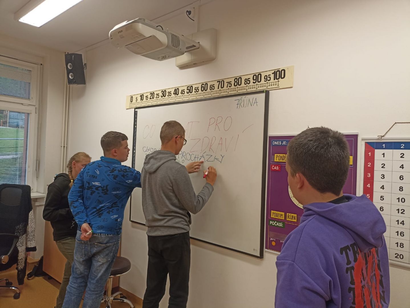 Na aktivity, které organizovalo město Zlín jsme v minulém týdnu navázali i v naší škole. Žáci si zopakovali pyramidu zdravého stravování, vytvořili si zdravé a nezdravé nákupní tašky, změřili tlak a samozřejmě potrénovali a posílili svá těla při cvičení. Součástí zdravého životního stylu je samozřejmě i zdraví psychické. Nezapomněli jsme proto na práci se vztahy ve třídách, aby nám všem společně bylo dobře.