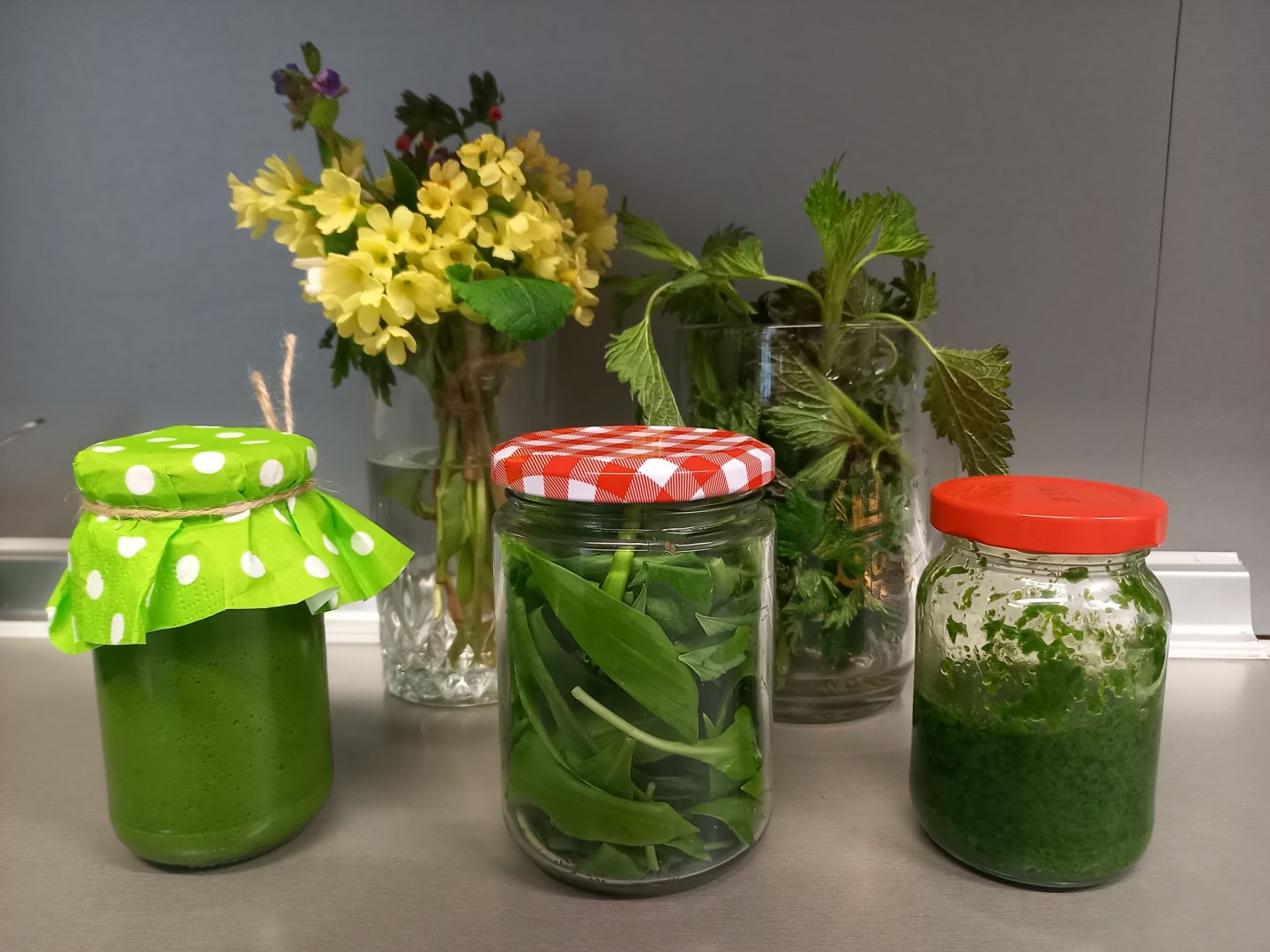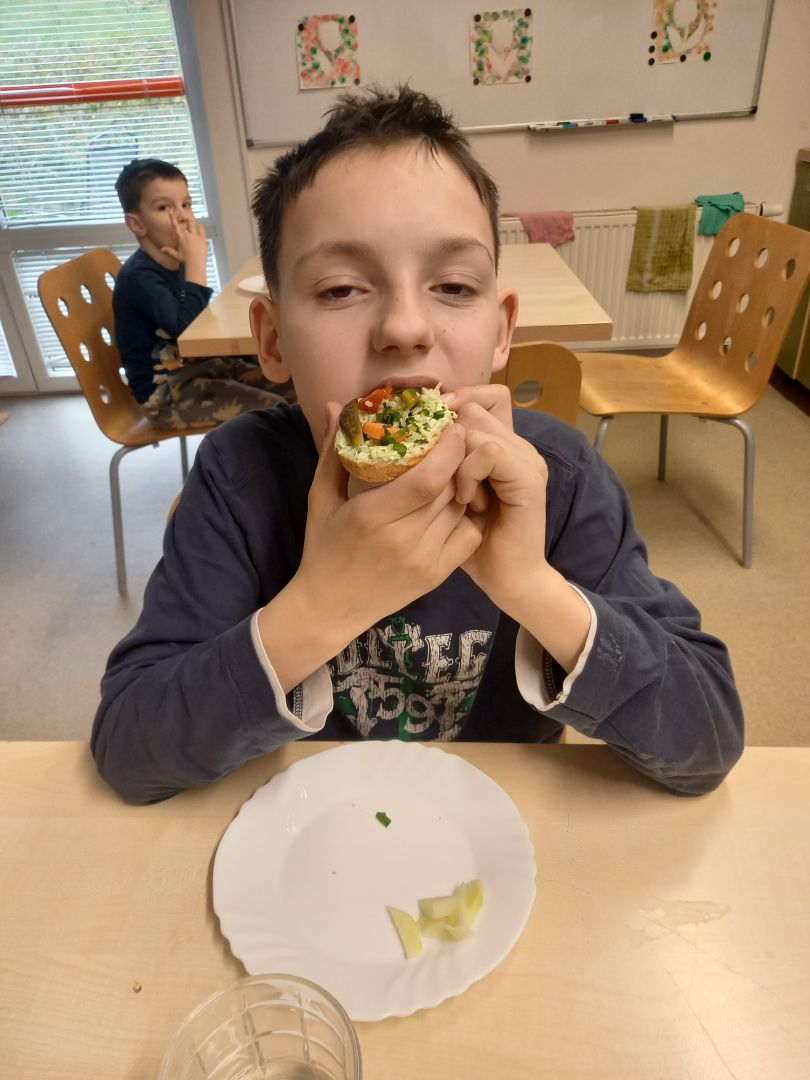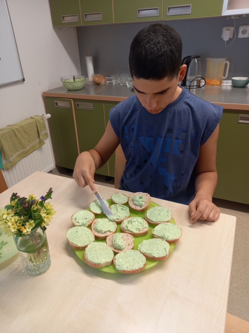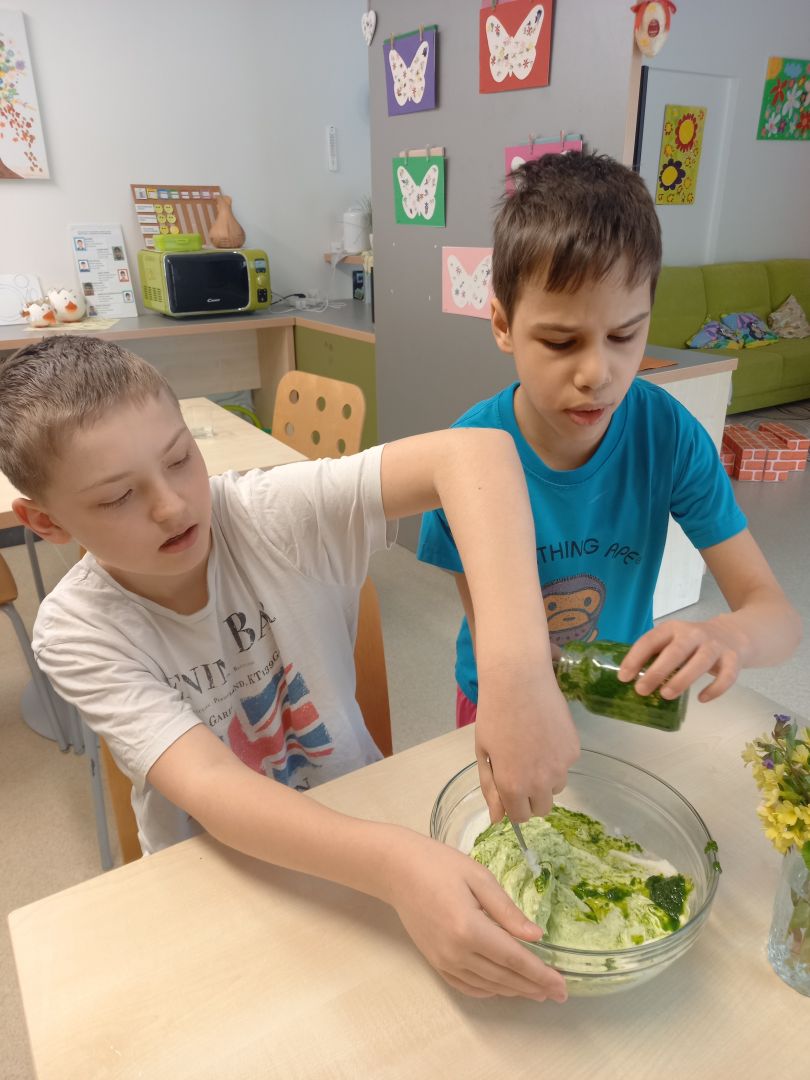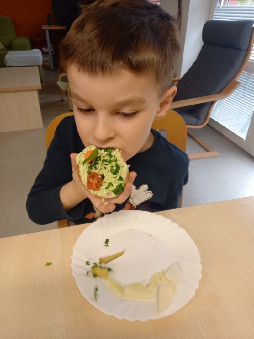 Zelený čtvrtek patřil přípravě tradičních zelených pokrmů a nápojů, abychom byli zdraví po celý rok. Děti z první rodinné skupinky si připravily pomazánku z jarních bylinek, a uvařily čaj z kopřiv. Pochutnaly si na zdravých jarních chlebíčcích. A protože jsou chlapci na této skupince v převaze, nesmělo chybět pletení a mašlení pomlázky.