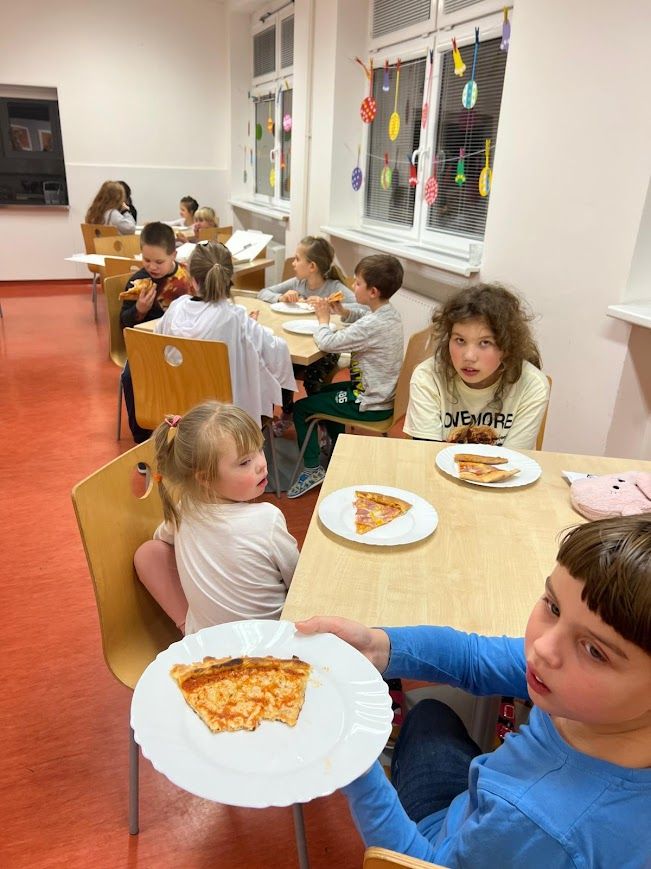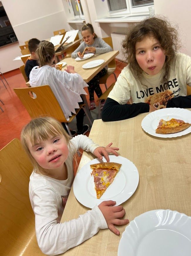 Nejdříve jsme si vymalovali každý své strašidlo. Poté už nás čekala strašidelné stezka, kterou děti zvládly na výbornou. Na konci stezky čekaly děti odměny a pořádná strašidelná diskotéka. Diskotéku si děti nejvíce užily. Poté už nám pan kurýr dovezl výborné pizzy, které zmizely během pár minut.