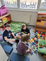 Užíváme si jarního počasí venku na školním hřišti. Nevadí nám ale ani když je venku zima. Hrajeme si s kamarády a nebo tvoříme.